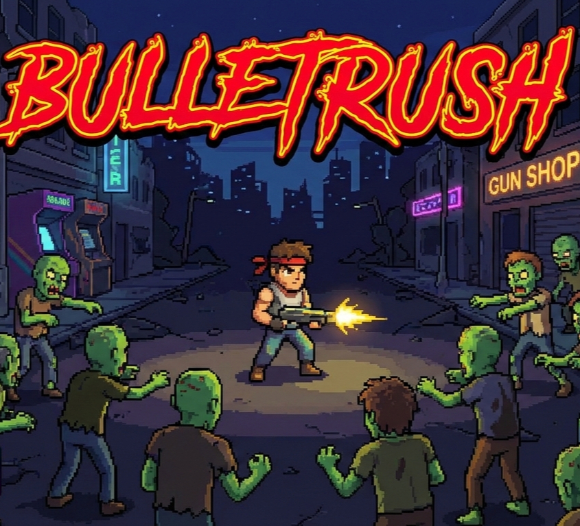 BulletRush is a fast-paced top-down shooter on mobile that draws inspiration from Hotline Miami, featuring intense action with a zombie twist of which resembles Call of Duty: Zombies. The Player would navigate through challenging levels, utilizing a variety of weapons, and interacting with the environment to complete the game. The game is set in a post-apocalyptic world infested with zombies, creating a high-stakes and atmospheric gameplay experience.